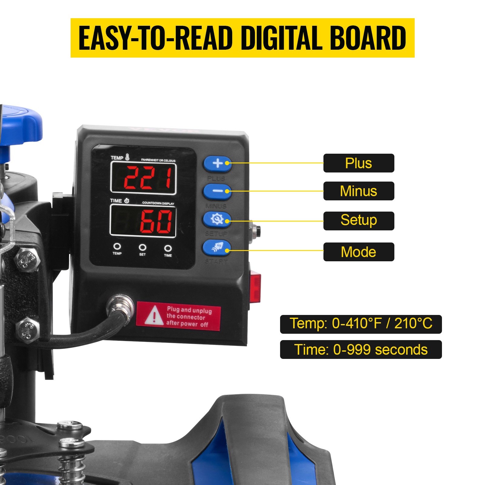 Ohjaimessa on selkeä digitaalinen näyttö ja painikkeet helppoa ja nopeaa käyttöä varten. Ylikuormitussuojapainike auttaa estämään ylikuumenemisen.