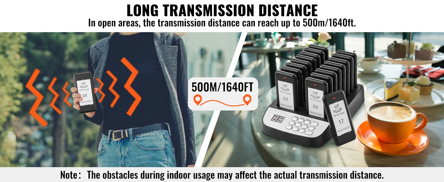 Langaton jonotusjärjestelmä ravintoloihin ja ruokarekkoihin 500 m kantama 16 hakulaitetta