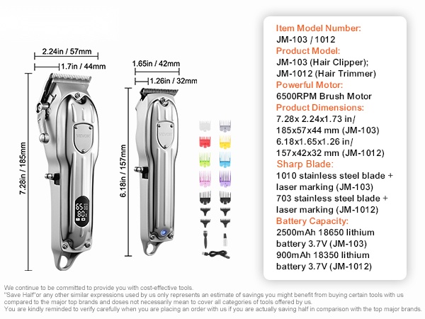 Tuotemalli: JM-200A (hiusleikkuri); JM-200S (hiustrimmeri); JM-T18 (partahöylä)