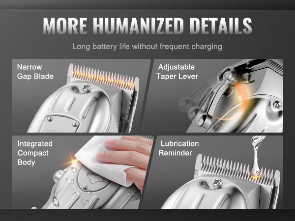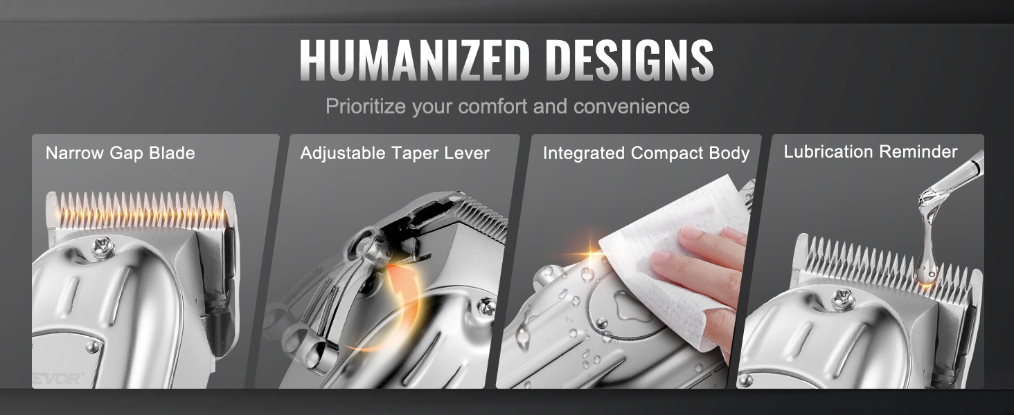 Mukavuus ja helppokäyttöisyys ovat keskiössä: sileä ja terävä terä, ergonominen ote, säädettävä karttuvipu sekä öljyämismuistutus on suunniteltu tekemään hiusten ja parran siistimisestä mahdollisimman vaivatonta ja miellyttävää.