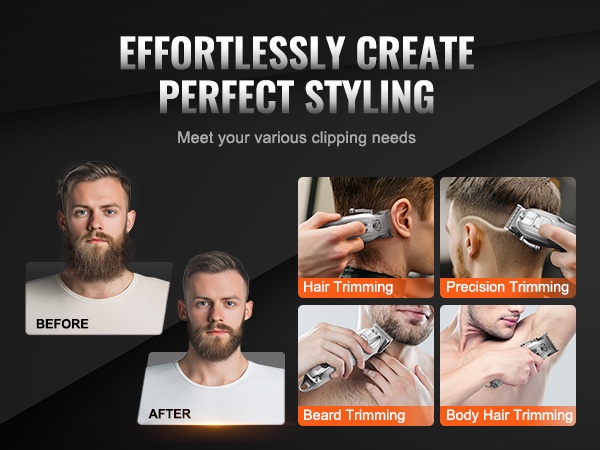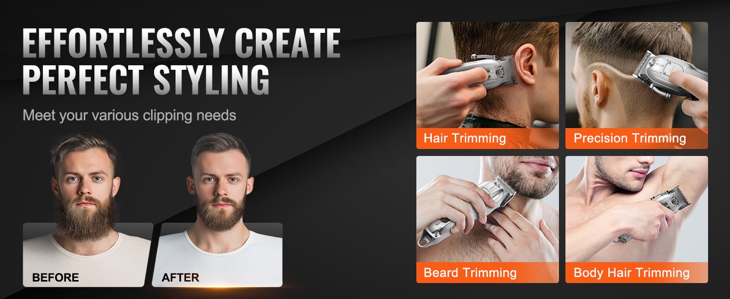 Tarvitsetko hiustenleikkuun, siistimisen tai ajelun? Tämä 3-in-1 hiusleikkuusarja kattaa kaikki muotoilutarpeesi. Saat tarkat, siistit hiustenleikkuut ja yksityiskohtaisen partamuotoilun ja voit nauttia kampaamotasoisesta lopputuloksesta kotona ilman turhaa odottelua parturissa.