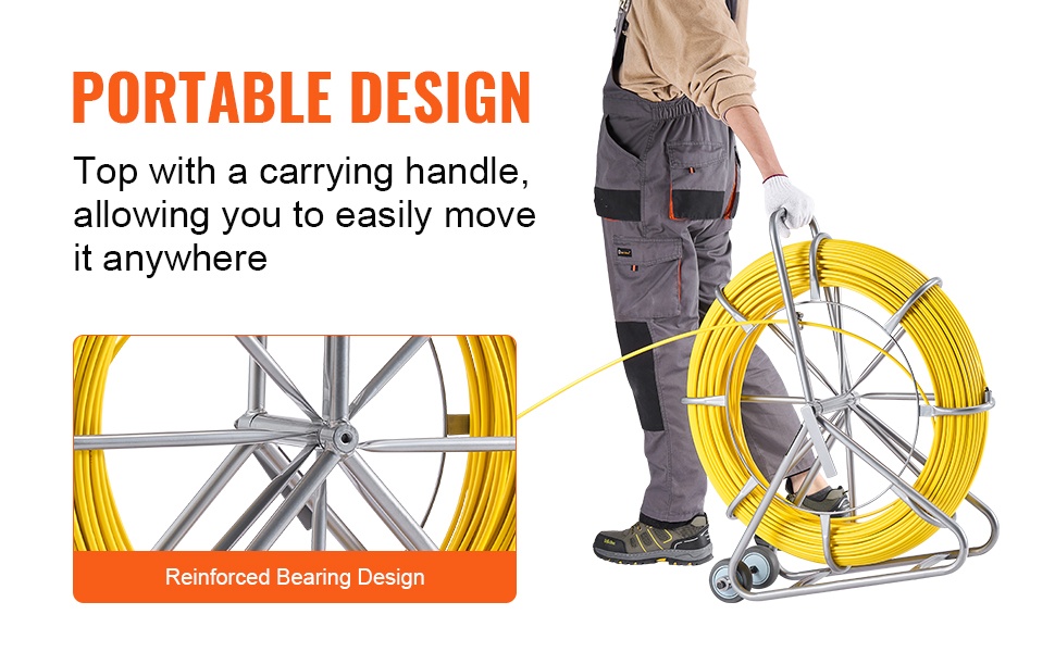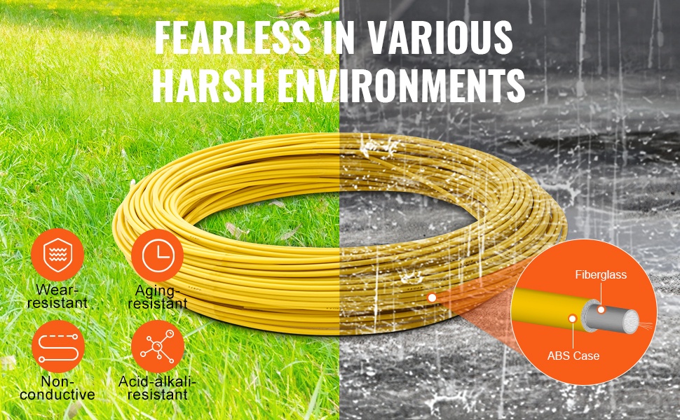Lasikuituinen kaapelinvetolanka on suojattu paksulla ABS-kerroksella, joka parantaa kestävyyttä ja suojaa kovilta olosuhteilta. Runko on valmistettu paksusta hiiliteräksestä, joka tekee rakenteesta tukevan ja vakaan. Maalattu pinta auttaa ehkäisemään ruostumista ja pidentää käyttöikää.
