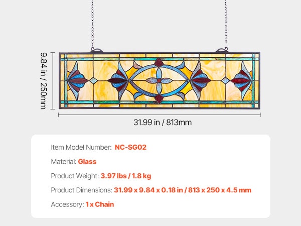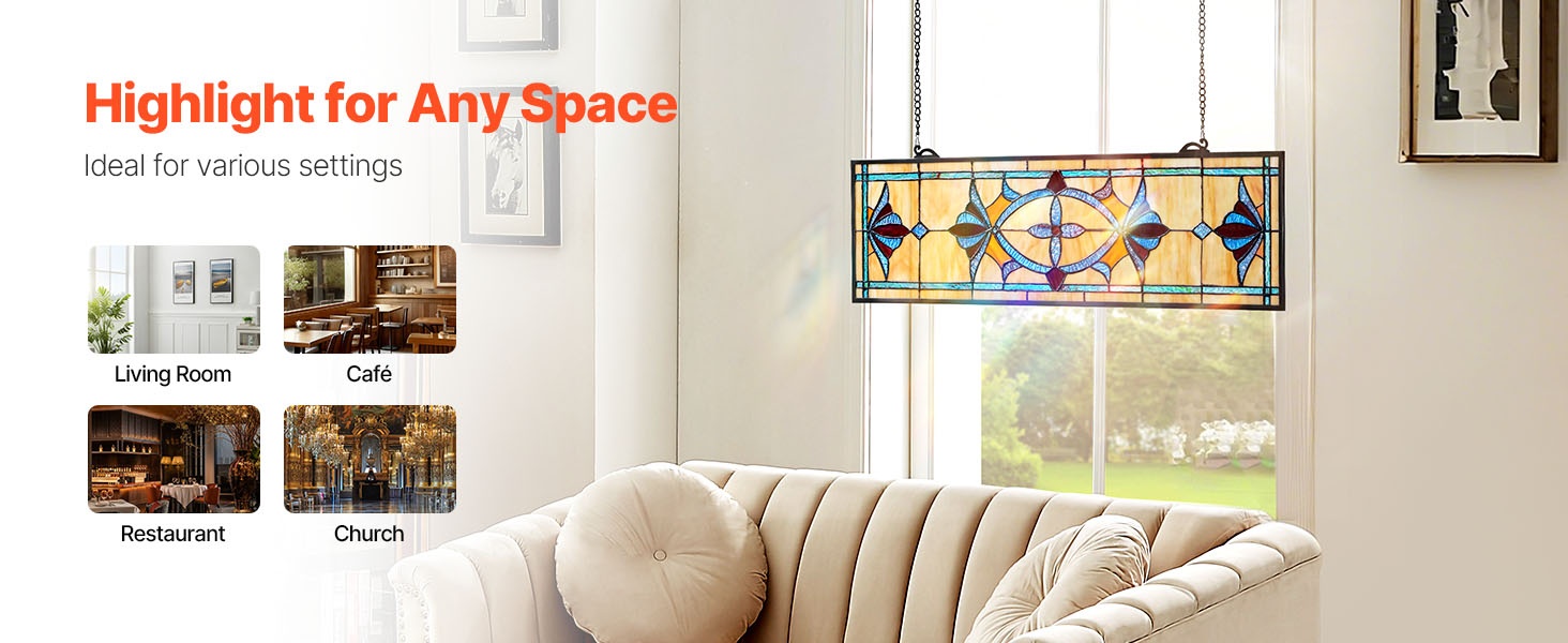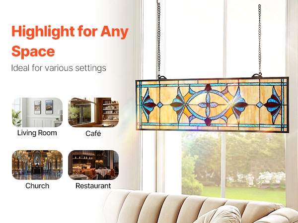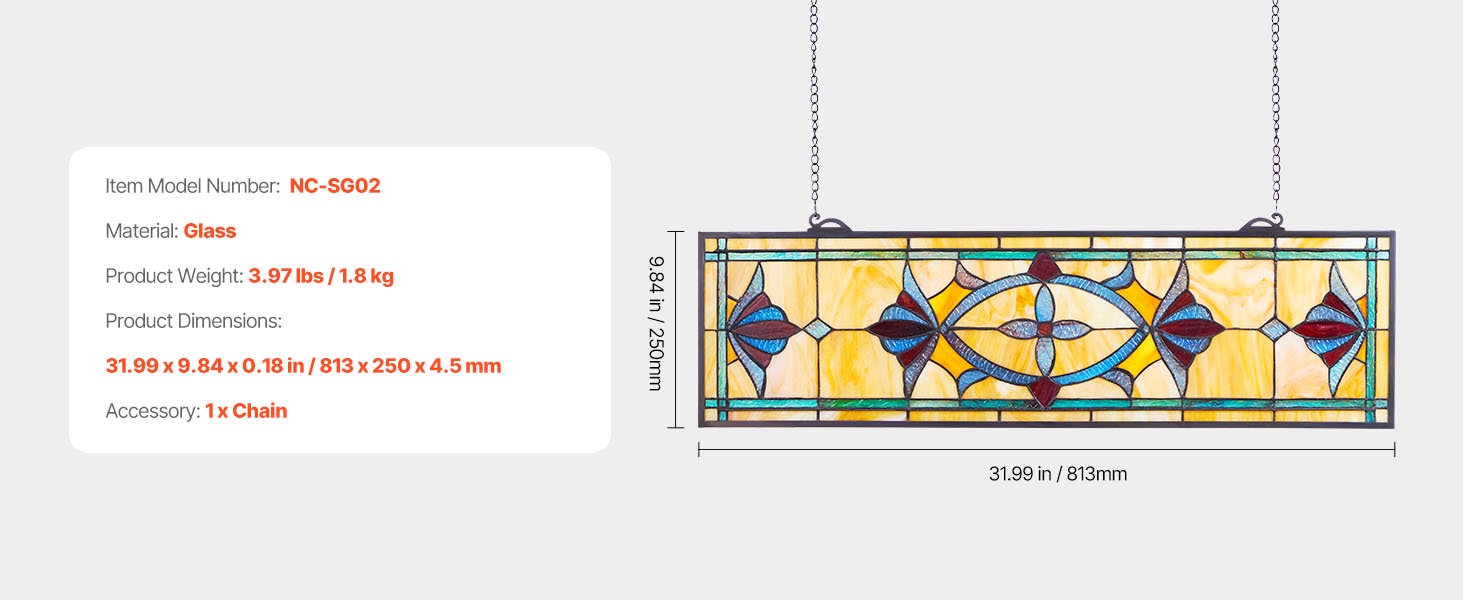 - Perinteinen Tiffany-tyylinen lasimaalattu ikkunapaneeli ketjulla ripustettavaksi