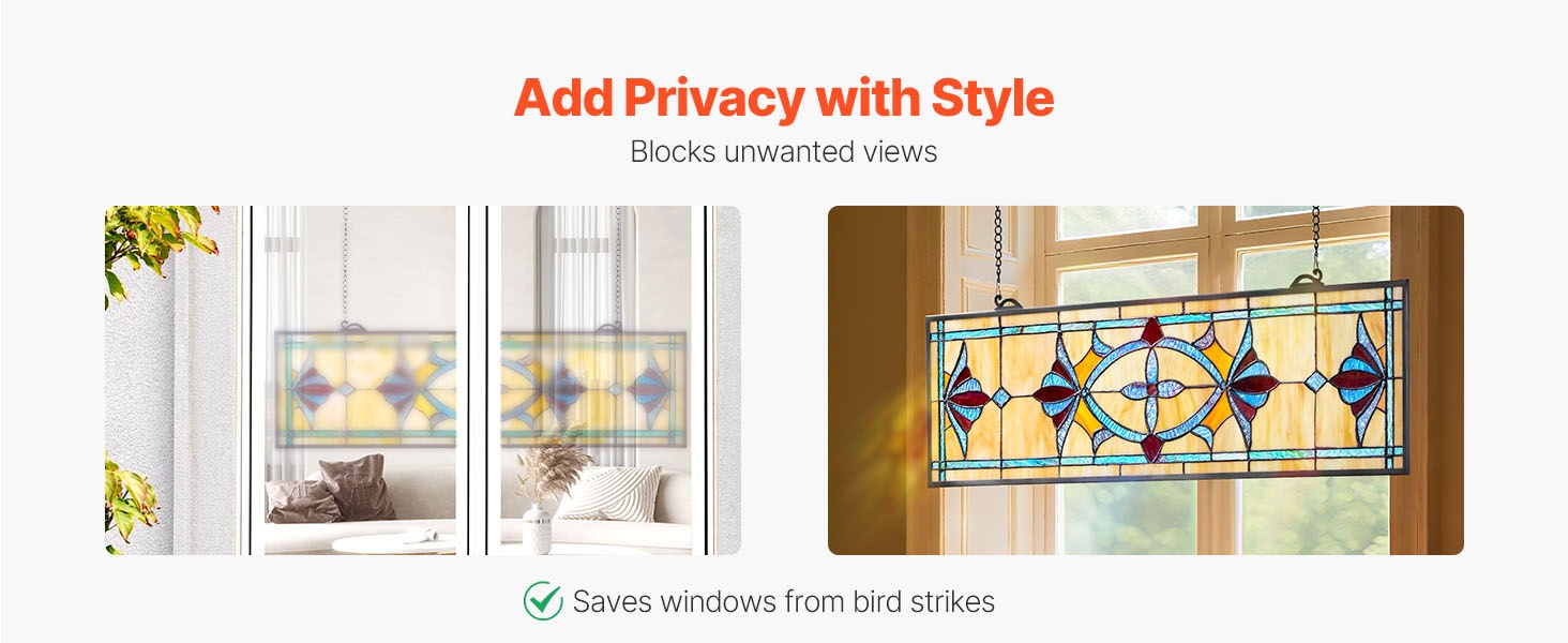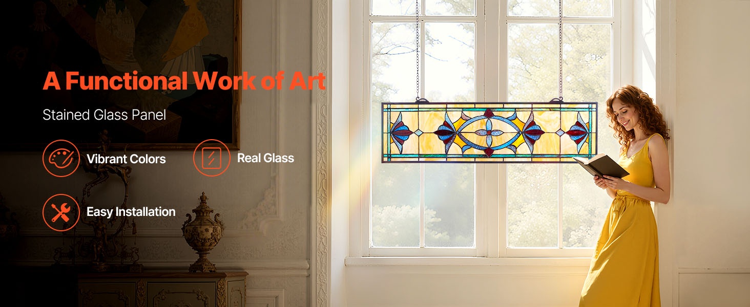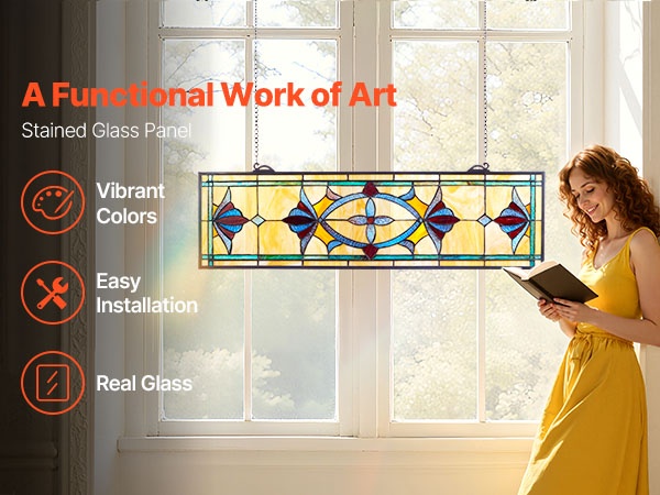 Tämä lasimaalattu ikkunapaneeli on enemmän kuin pelkkä sisustuselementti – se on käyttöön tarkoitettu taideteos. Eloisa, haalistumista kestävä lasi sopii ikkunoihin, seiniin tai pieniin nurkkauksiin ja tuo tilaan persoonallista ilmettä.