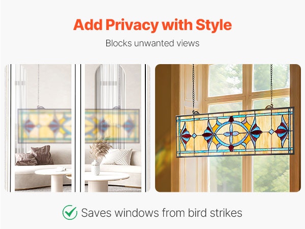 Ripustettava lasimaalattu paneeli hämärtää näkymän ulkoa sisälle, mutta säilyttää huoneen valoisana. Se sopii hyvin ikkunoihin, jotka avautuvat kadulle tai naapuritaloihin. Kuvioitu pinta tekee ikkunasta myös paremmin havaittavan linnuille ja voi vähentää törmäyksiä.