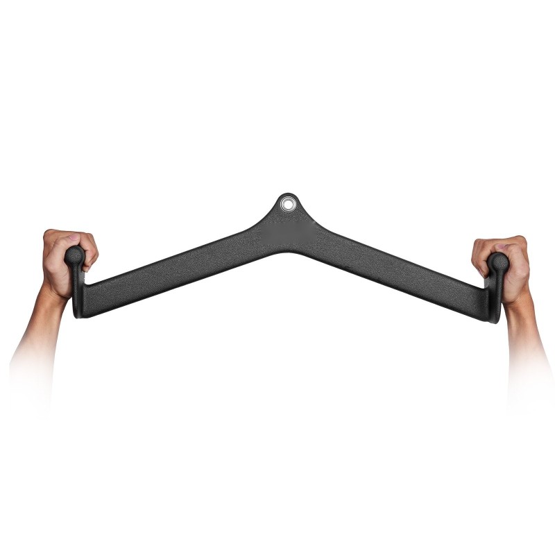 - Suunniteltu lat-vetoihin, soutuihin, ojentaja- ja hauisliikkeisiin kaapelikoneessa