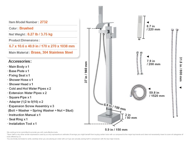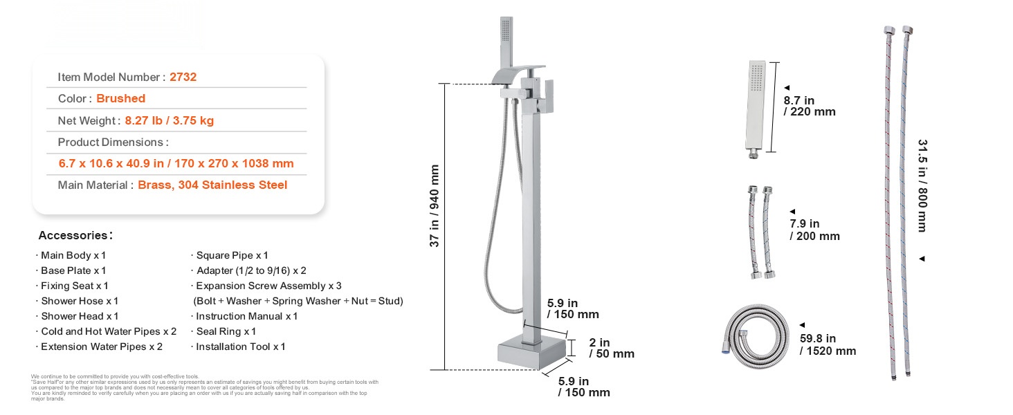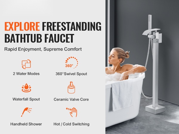 - Korkea virtaus: 1.61 gpm / 6.12 L minuutissa täyttää ammeen nopeasti