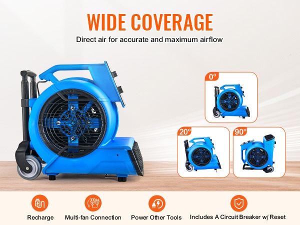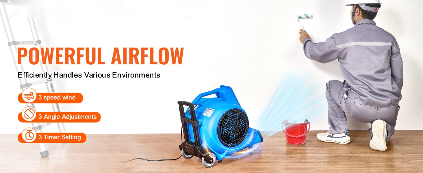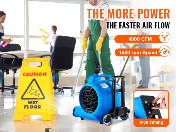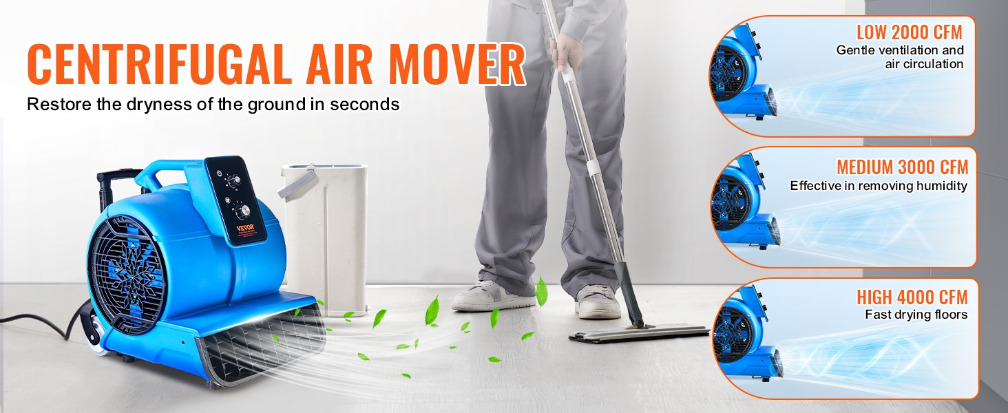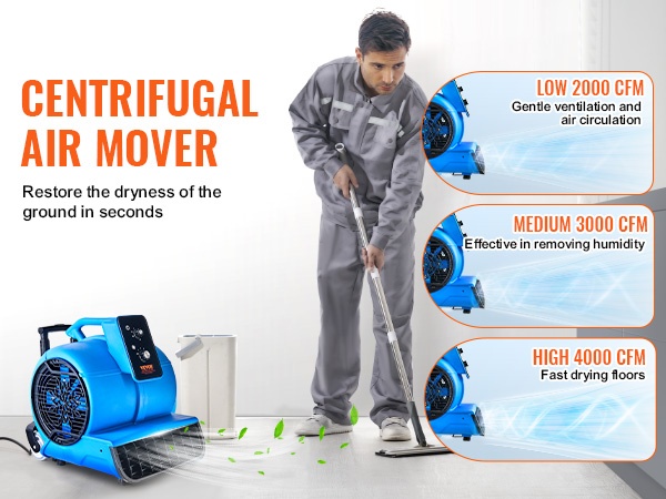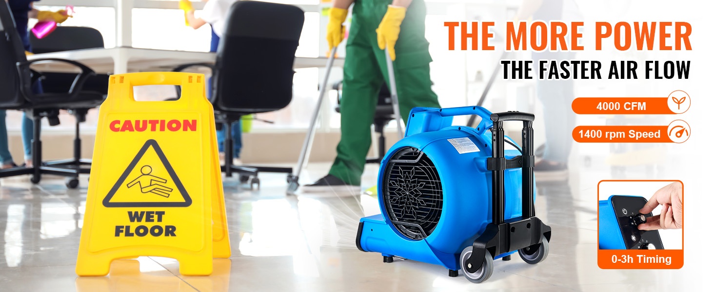 Tämä kompakti lattiapuhallin nopeuttaa lattioiden, mattojen ja muiden pintojen kuivumista sekä parantaa ilmanvaihtoa. 3-portainen nopeudensäätö ja 4 puhalluskulmaa helpottavat sopivan ilmavirran ja suunnan löytymistä erilaisiin tilanteisiin kotona, siivousalan kohteissa ja muissa tiloissa.
