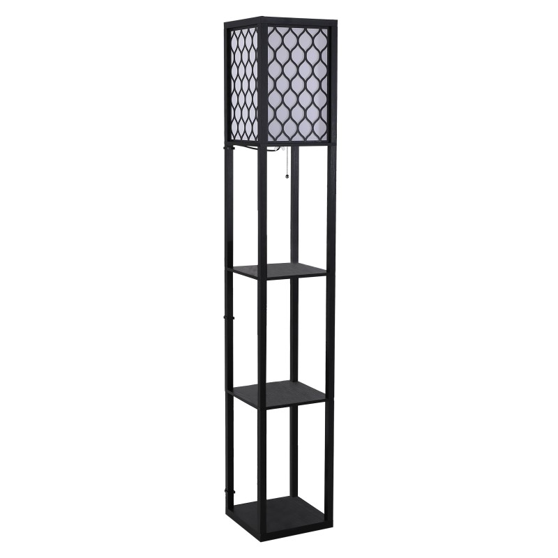 Lattiavalaisin hyllyillä olohuoneeseen, MDF/kangas, 26 x 26 x 160 cm, musta, E27, ilman lamppua