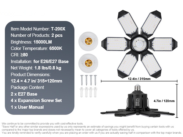 Tämä LED-kattovalo tuottaa 22000 lumenin tasaisen ja runsaan valon 6500K värilämpötilalla, joka muistuttaa luonnonvaloa. Valo sopii erityisesti autotalliin, varastoon, kellariin ja työpajalle, missä tarvitaan kirkasta ja tasaista valaistusta.
