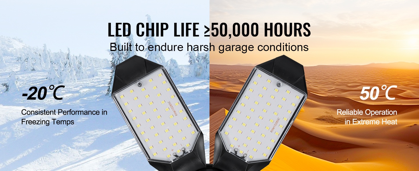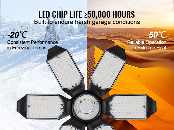 Valaisin on suunniteltu kestämään vaativia autotalli- ja varasto-olosuhteita. Se toimii luotettavasti noin -20℃ – 50℃ lämpötiloissa, ja LED-komponenttien käyttöikä on yli 50000 tuntia, mikä vähentää vaihtotarvetta pitkällä aikavälillä.