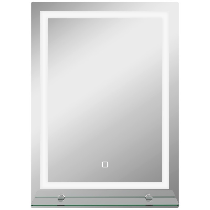 LED-kylpyhuoneen peili hyllyllä, himmennettävä, sumunesto, kosketuskytkin, 50 x 70 cm, hopea