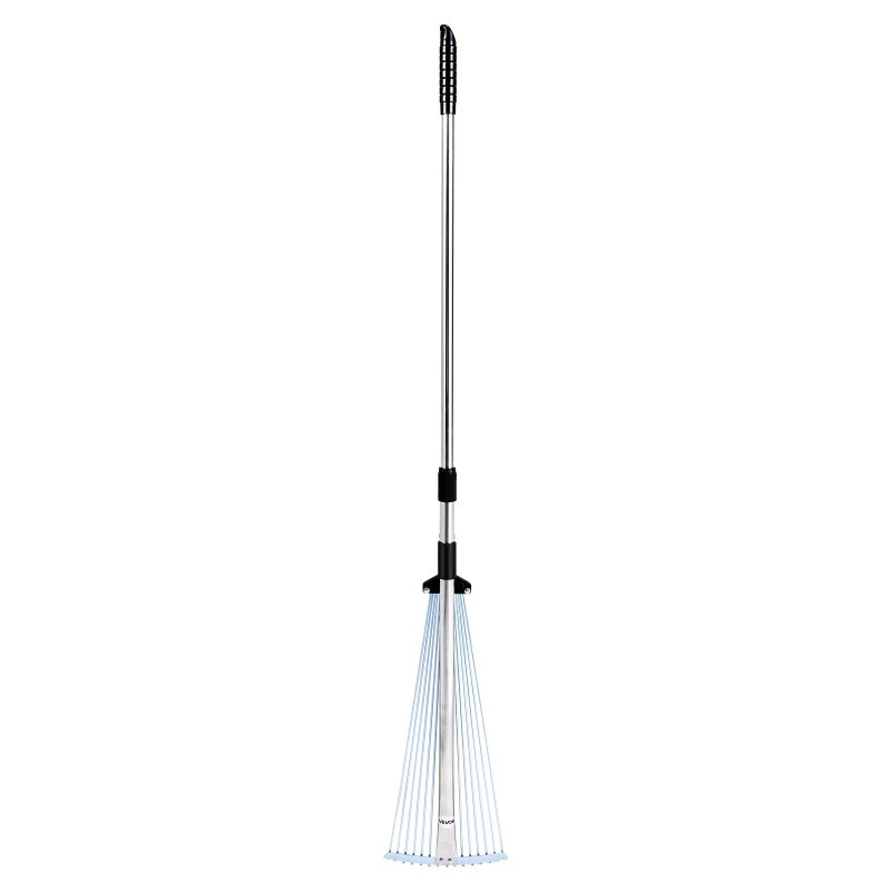 Lehtiharava ruostumattomasta teräksestä 15 piikkiä haravapää 19–57 cm teleskooppivarsi 81–160 cm