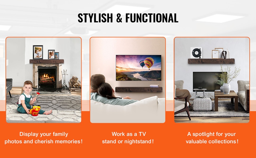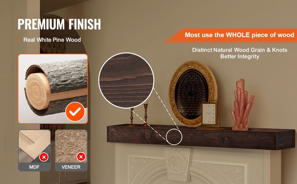 Naturaalista puusta valmistettu leijuva takkahylly tuo kotiin lämpöä ja maalaismaista ilmettä. Hylly tarjoaa runsaasti tilaa koriste-esineille, valokuville ja kausittaisille somisteille ja toimii kodin huoneessa katseen vangitsevana yksityiskohtana takan yllä tai muulla seinällä.