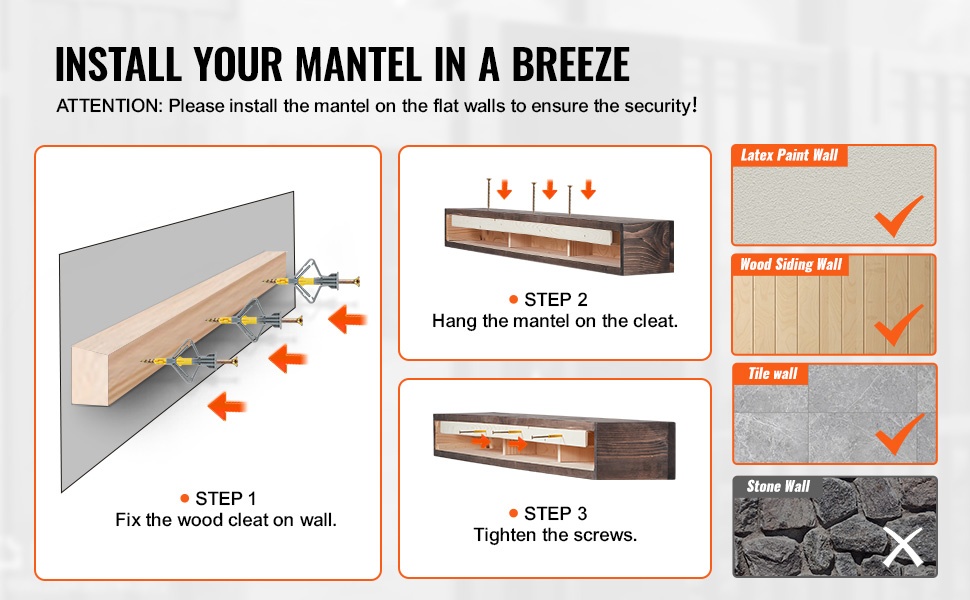 Hylly on tarkoitettu kiinnitettäväksi tasaiselle seinälle. Mukana tulevat kiinnitystarvikkeet helpottavat asennusta ja auttavat varmistamaan tukevan lopputuloksen.
