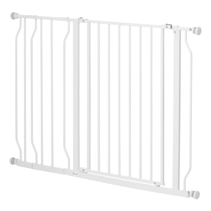 Lemmikin turvaportti koiralle, teräs/ABS, säädettävä leveys 75–115 cm, korkeus 76 cm, valkoinen