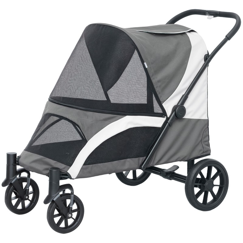 Lemmikkikärry suurille koirille, taitettava koiravaunu 30 kg asti, 4 pyörää ja jarru, tummanharmaa