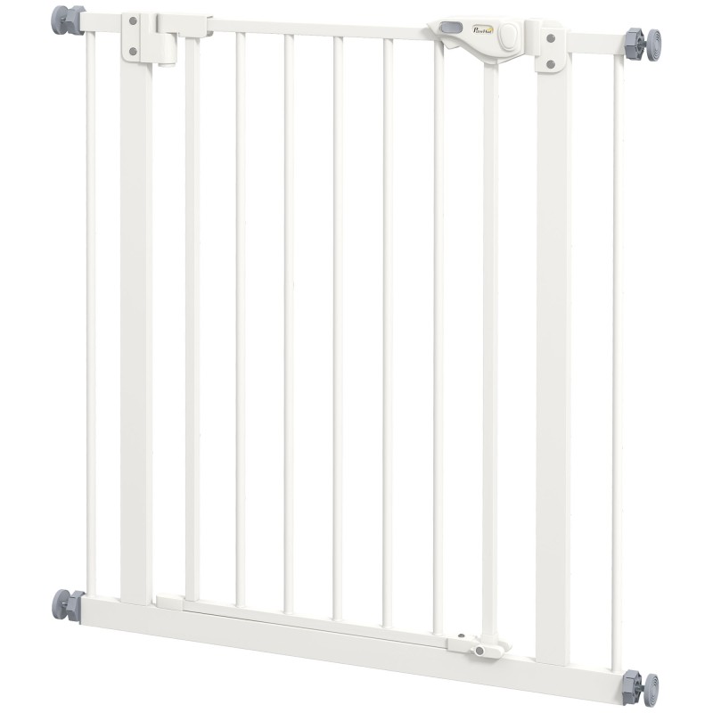 Lemmikkiportti koirille, metallia ja muovia, säädettävä leveys 74–80 cm, valkoinen