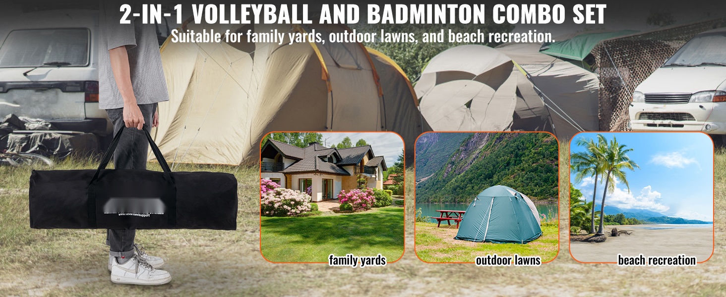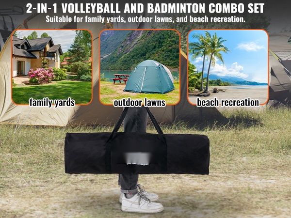 Tämä 2-in-1-lentopallo- ja sulkapallosetti toimii hyvin kotipihalla, puiston nurmikolla tai rannalla. Sama verkko mahdollistaa erilaiset pelit ja aktiviteetit yhdellä ratkaisulla.