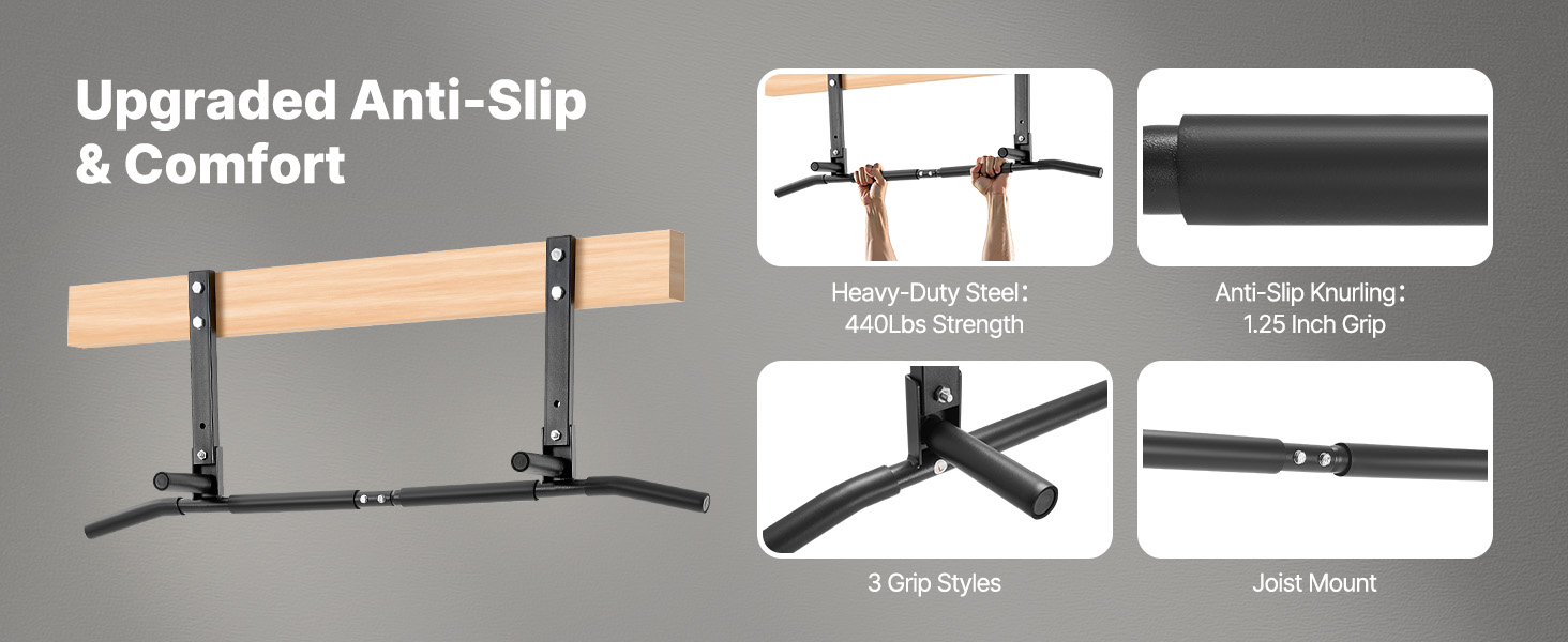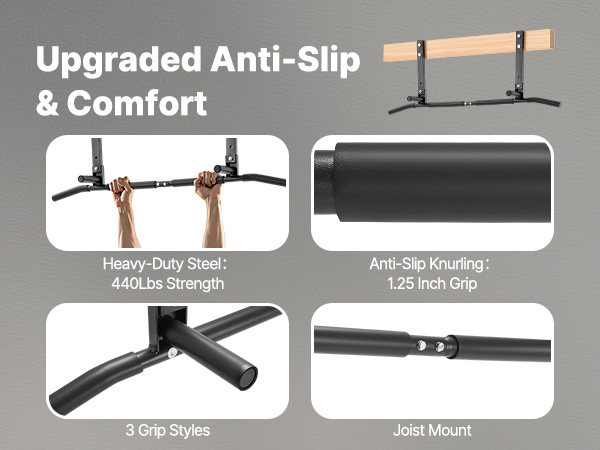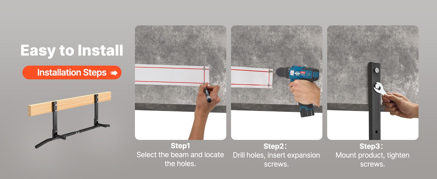 Palkkiin kiinnitettävä rakenne hyödyntää tilan tehokkaasti ja sopii hyvin sekä kotiin että pienelle salille. Tanko voidaan asentaa puu- tai betonipalkkeihin mukana tulevien kiinnityspisteiden mukaisesti.