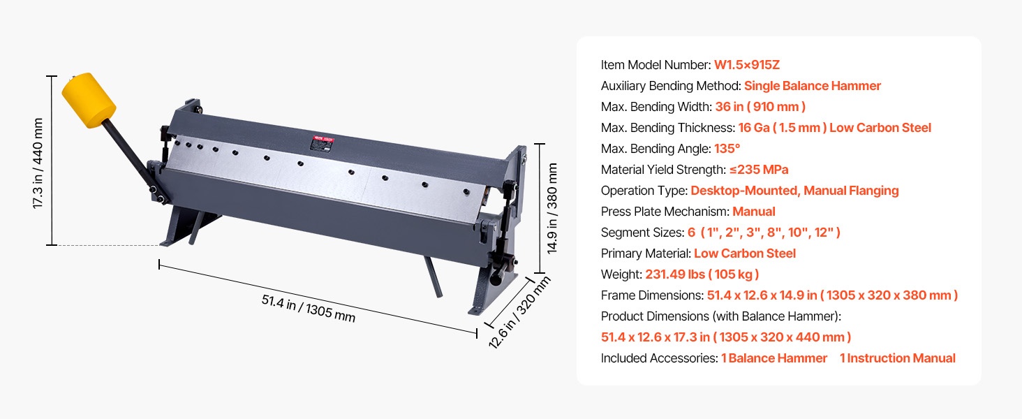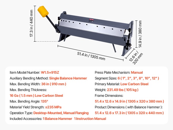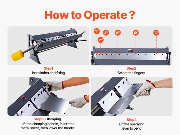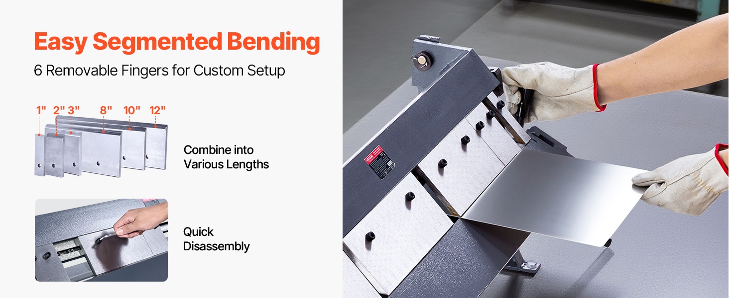Levytaivutin käsikäyttöinen 12 tuuman 1 mm vähähiiliselle teräkselle 5 irrotettavaa sormea
