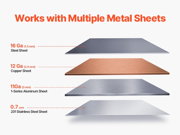 Levyntaivutin käsittelee vaivatta vähähiilistä terästä, ruostumatonta terästä, alumiinia ja kuparia. 20 Ga (1 mm) vähähiilinen teräs taipuu yhdellä työliikkeellä, joten erillisiä koneita ei tarvita eri töille.