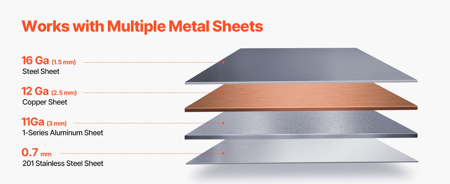 - Sopii vähähiiliselle teräkselle, ruostumattomalle teräkselle, alumiinille ja kuparille