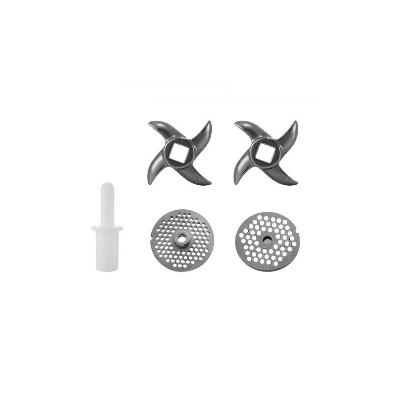 Toimitukseen sisältyvät ruostumaton teräksinen tarjotin ja muovinen työntötikku helpottavat käyttöä. Laitteessa on ilmanvaihtoaukot lämmönpoistoon, kaksi eri reikäkiekkoa eri jauhatustarpeisiin sekä neljä liukumista estävää jalkatyynyä tukevuuden varmistamiseksi.