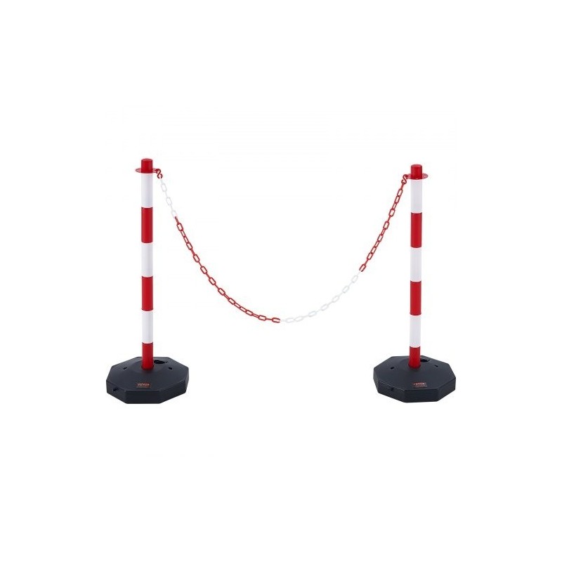 Säädettävät liikenteen ohjaustolpat punainen ja valkoinen 4 kpl täytettävällä pohjalla ketjulla