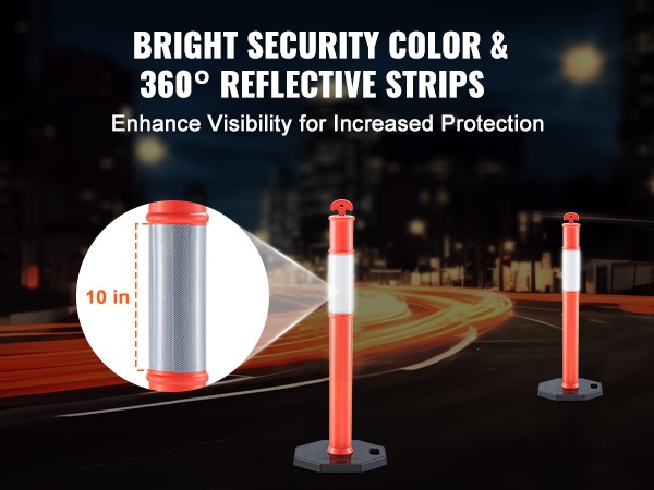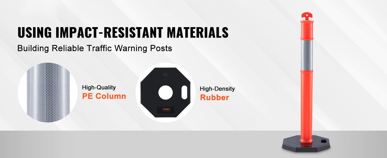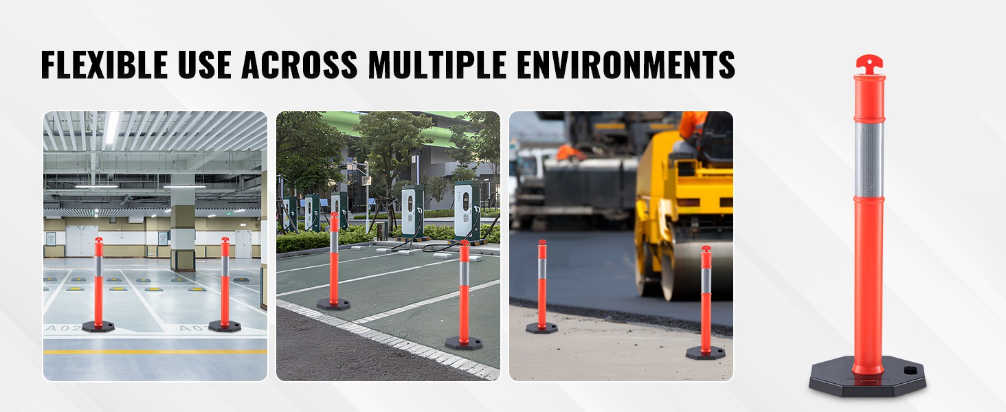 Liikenteen ohjaustolpat on varustettu kirkkaalla turvavärillä ja 360 asteen heijastavilla raidoilla, jotta ne näkyvät kaukaa. Ne auttavat parantamaan jalankulkijoiden ja työntekijöiden turvallisuutta sekä suunnitelluissa työmaajärjestelyissä että odottamattomissa tilanteissa.