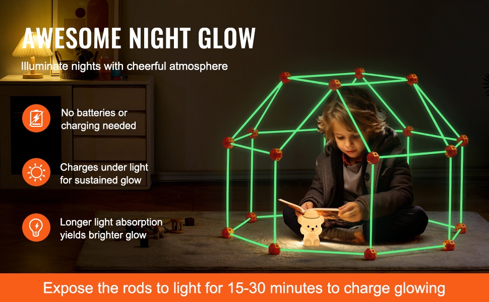 Rodit hohtavat pimeässä, joten rakennelmat muuttuvat illalla tunnelmallisiksi piilopaikoiksi. Sarja sopii yhteiseen rakenteluun lasten kanssa ja tarjoaa vaihtoehdon ruutuajalle niin sisällä kuin ulkonakin.