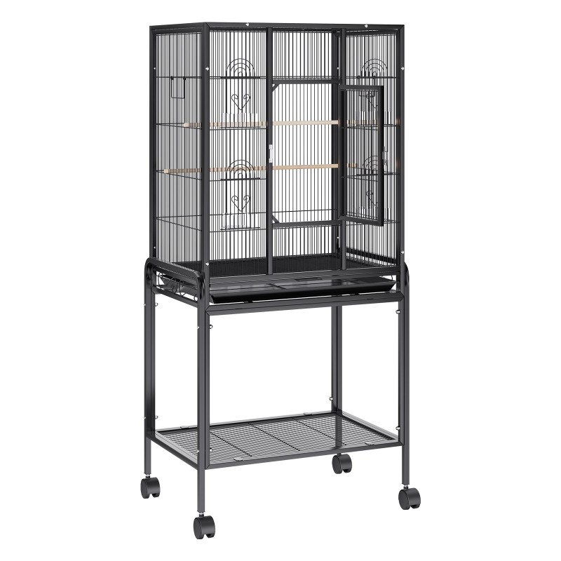 Lintuhäkki hiiliterästä tilava keskikokoisille ja suurille linnuille pyörällisellä jalustalla ja irrotettavalla tarjottimella