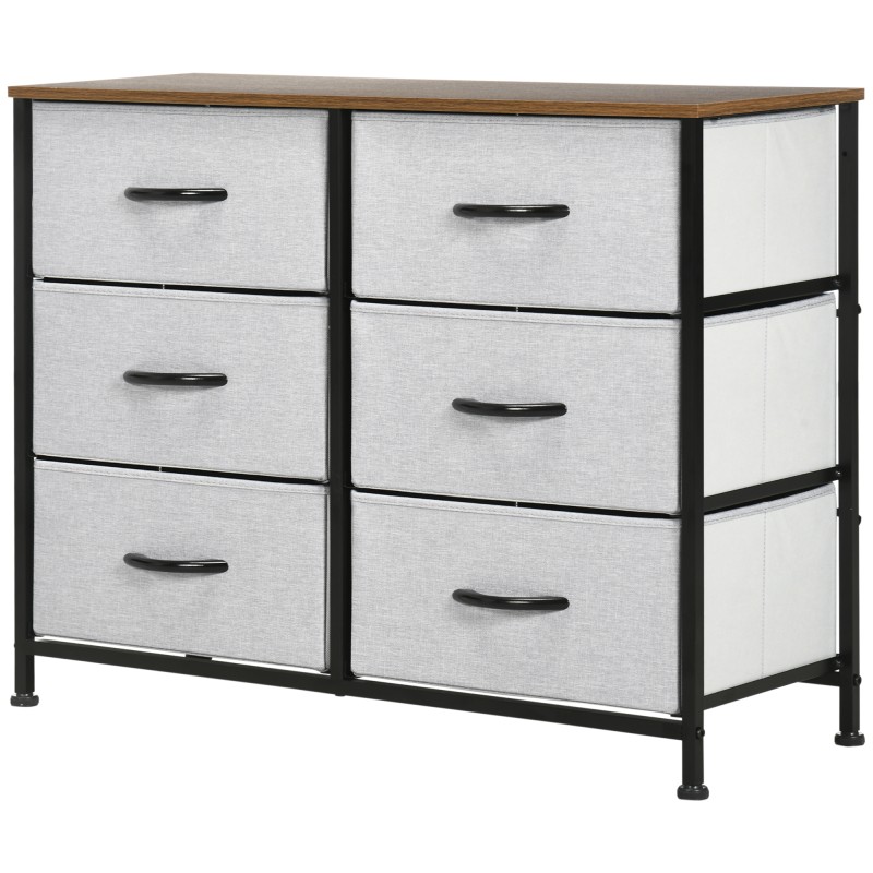 Lipasto 6 kangaslaatikolla, teräsrunko ja MDF-kansi, 80 x 30 x 62,5 cm, ruskea/musta/harmaa