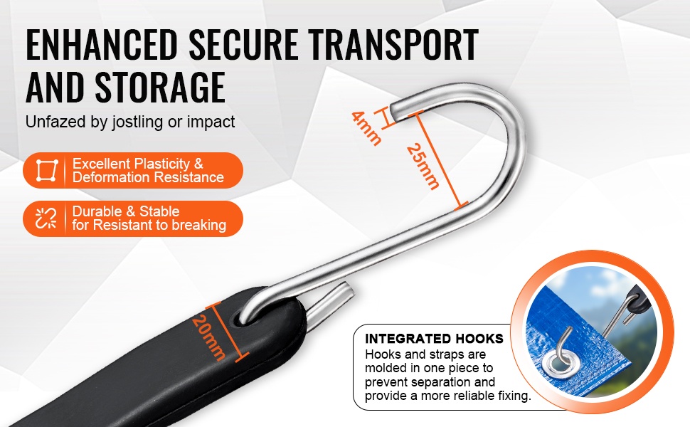 Vahvat S-koukut kestävät kuormitusta ja auttavat pitämään narun tukevasti kiinnitettynä ilman muodonmuutoksia tai murtumista. Tämä vähentää irtoamisen riskiä kuljetuksen aikana.