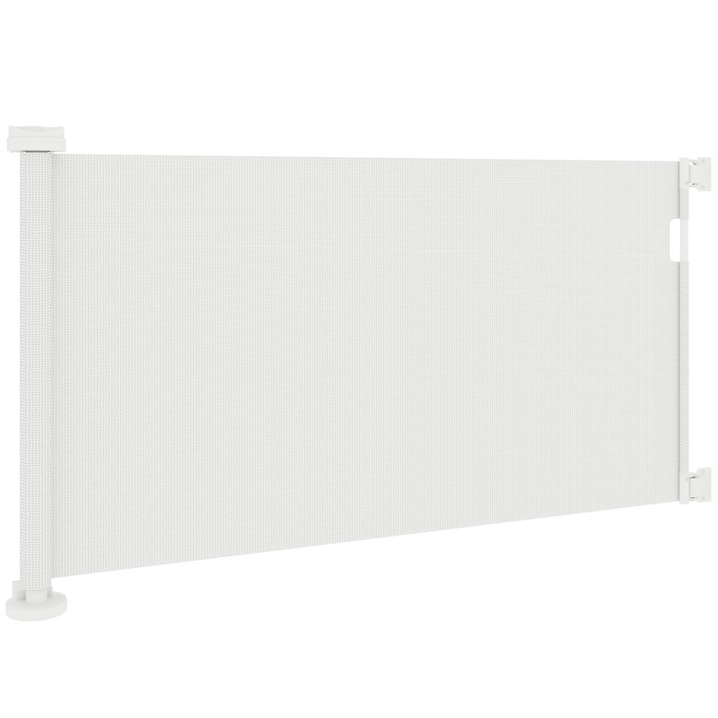 Liukuva turvaportti koirille, muovi/alumiini, max leveys 136 cm, korkeus 87 cm, valkoinen