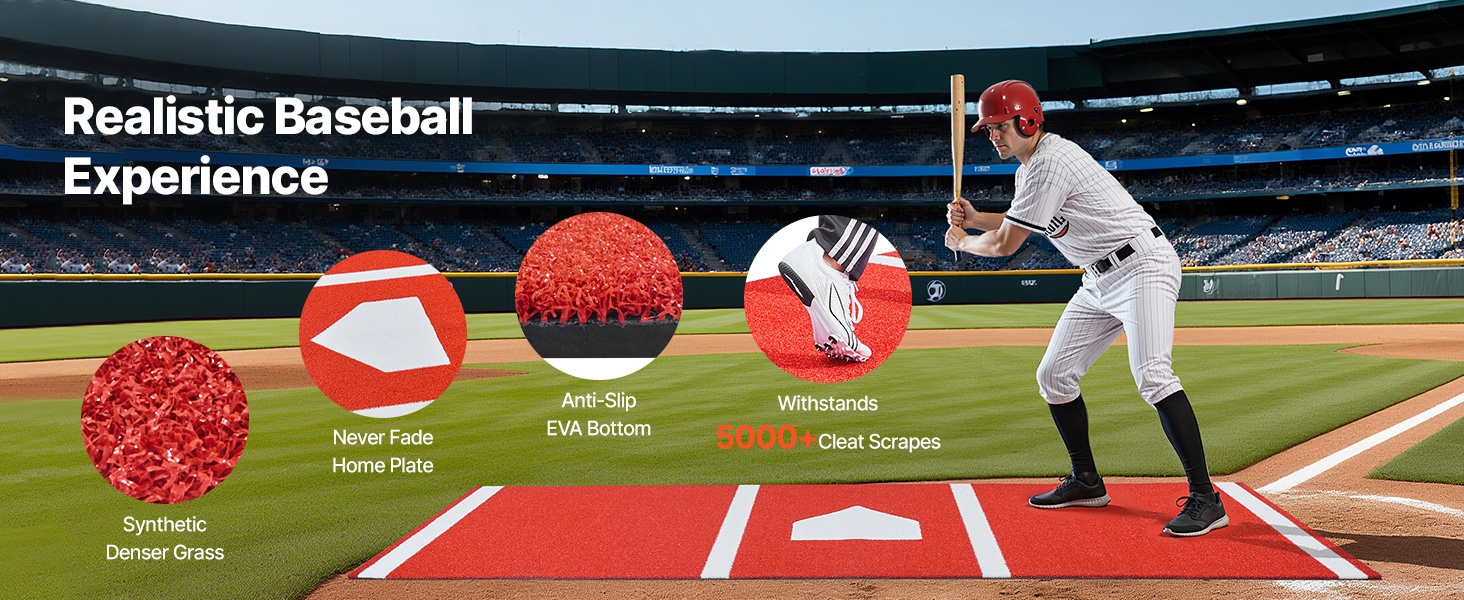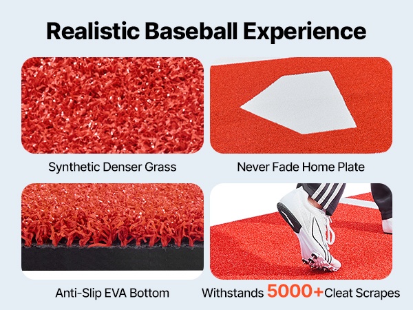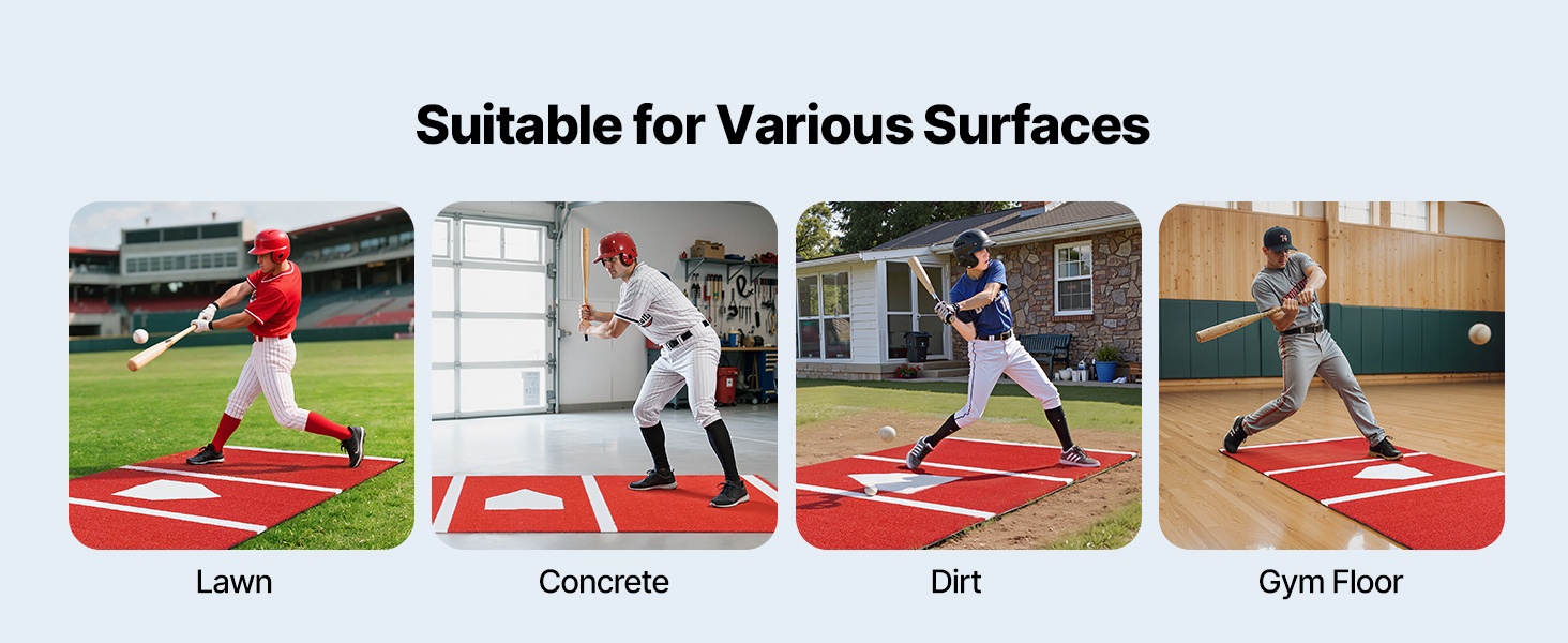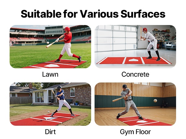 Tämä baseball- ja softball-lyöntimatto tarjoaa runsaasti tilaa erilaisten lyönti- ja heittoharjoitusten tekemiseen. Vakiomittaiset lyöntipisteet ja askelluslinjat auttavat parantamaan lyöntivoimaa, tarkkuutta ja kokonaisvaltaista suoritusta.