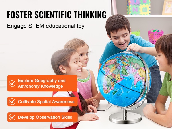 Tämä maapallo sopii hyvin lasten ensikosketukseksi maantietoon. Monisuuntainen pyöriminen kehittää tilallista hahmottamista ja avartaa maailmankuvaa. Maantieteellisen ja tähtitieteellisen perustiedon kautta se tukee myös tieteellistä ajattelua.