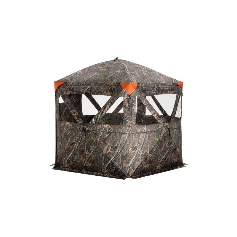 Tilava maastokuvioitu metsästyskatos 6–7 hengelle, jossa on 288° läpinäkyvä näkymä, 4 suurta vaakasuuntaista ikkunaa ja suuri ylös kääntyvä ovi helppoa kulkua varten. Katos toimitetaan kantolaukun kanssa, ja se sopii metsästykseen sekä valokuvausteltaksi erilaisissa maastoissa.
