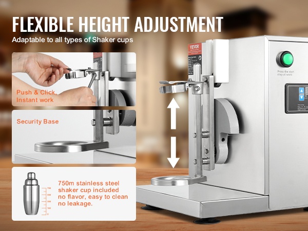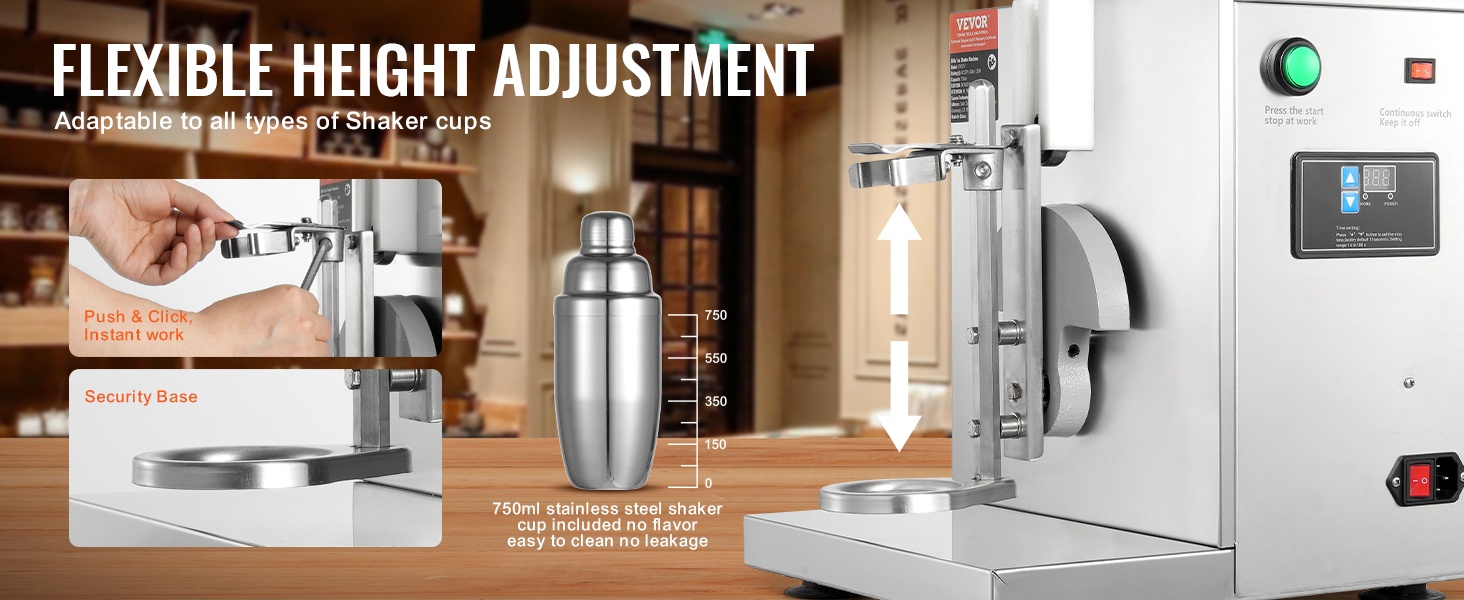- Säädettävä korkeus eri kokoisille mukeille ja shake-kipoille