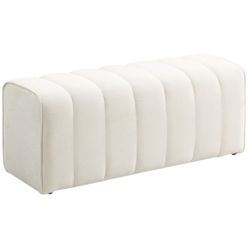 Tyylikäs ja mukava lisä sängyn päätyyn tai jalkopäähän, eteiseen tai olohuoneeseen. Tämä kermavalkoinen istuinpenkki tuo makuuhuoneeseen viimeistellyn ilmeen ja tarjoaa samalla rennon paikan istua tai lepuuttaa jalkoja pitkän päivän jälkeen. Pehmeä verhoilu, kanavatikkaukset ja loivasti pyöristetyt reunat luovat rauhallisen ja kodikkaan tunnelman.