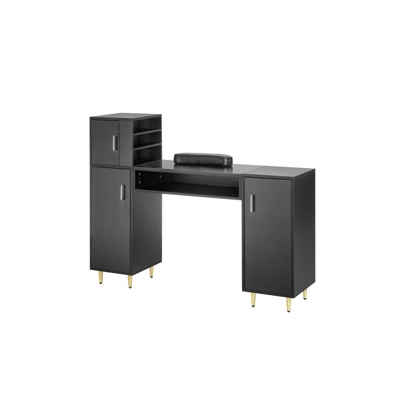 Tämä manikyyri- ja meikkipöytä on suunniteltu kauneushoitoloihin, spa-tiloihin ja kotikäyttöön. Lasitasoinen työtaso on asetonia kestävä ja helppo pitää puhtaana, ja useat säilytyskaapit auttavat pitämään työvälineet järjestyksessä. Tukeva rakenne ja rannetuki tekevät työskentelystä miellyttävää sekä ammattilaiselle että asiakkaalle.