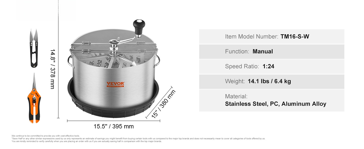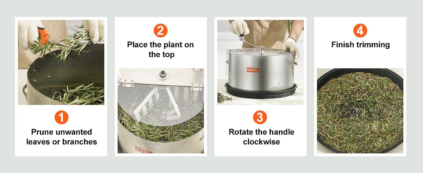 Manuaalinen 16-tuumainen lehtitrimmeri helpottaa kukkien ja lehtien siistimistä tarkasti ja hallitusti. Ruostumattomasta teräksestä valmistettu runko ja läpinäkyvä PET-kansi mahdollistavat leikkausprosessin seuraamisen, samalla kun sisältyvät käsisakset auttavat viimeistelyssä. Sopii lehtien, kukkien, nuppujen ja vesiviljelykasvien leikkaamiseen.
