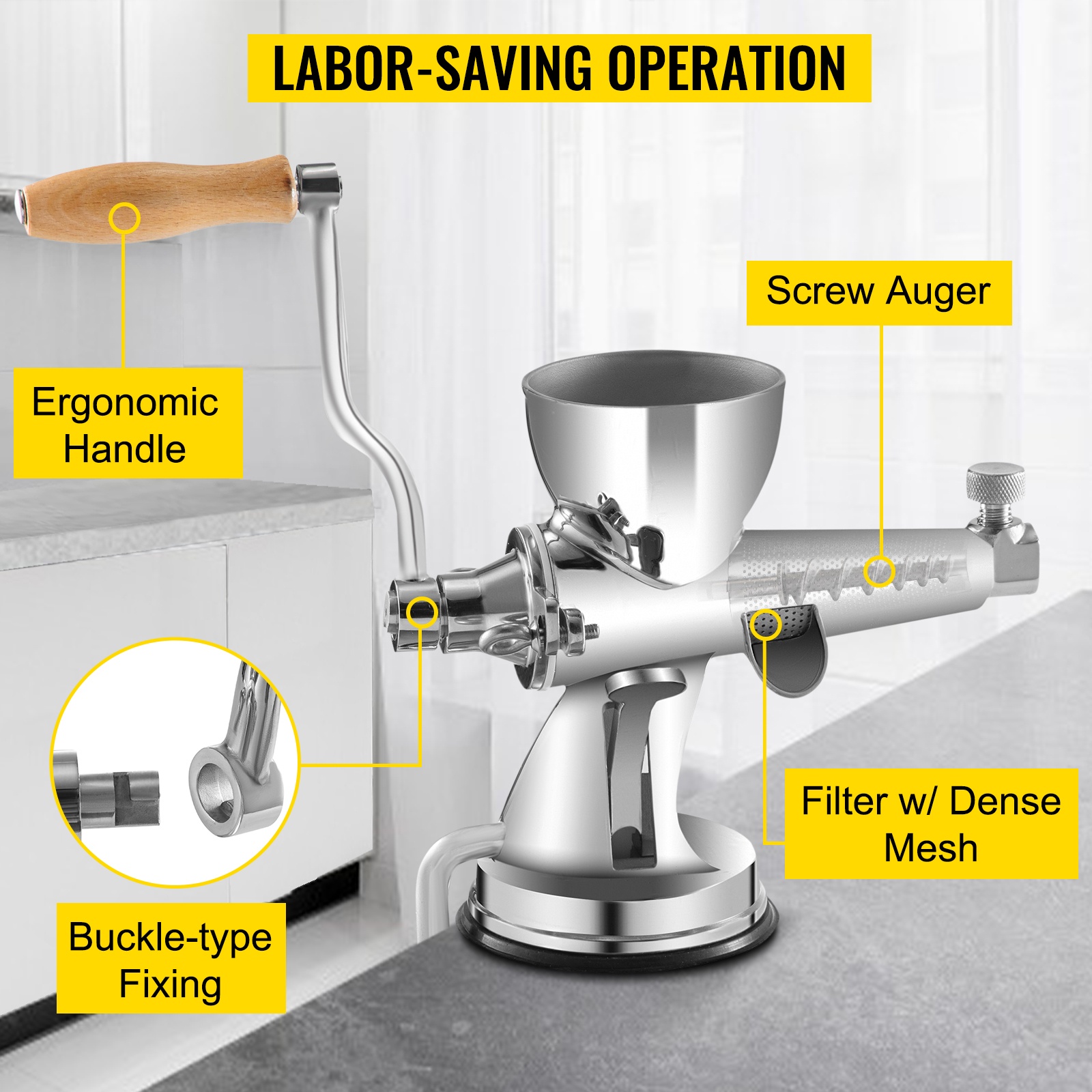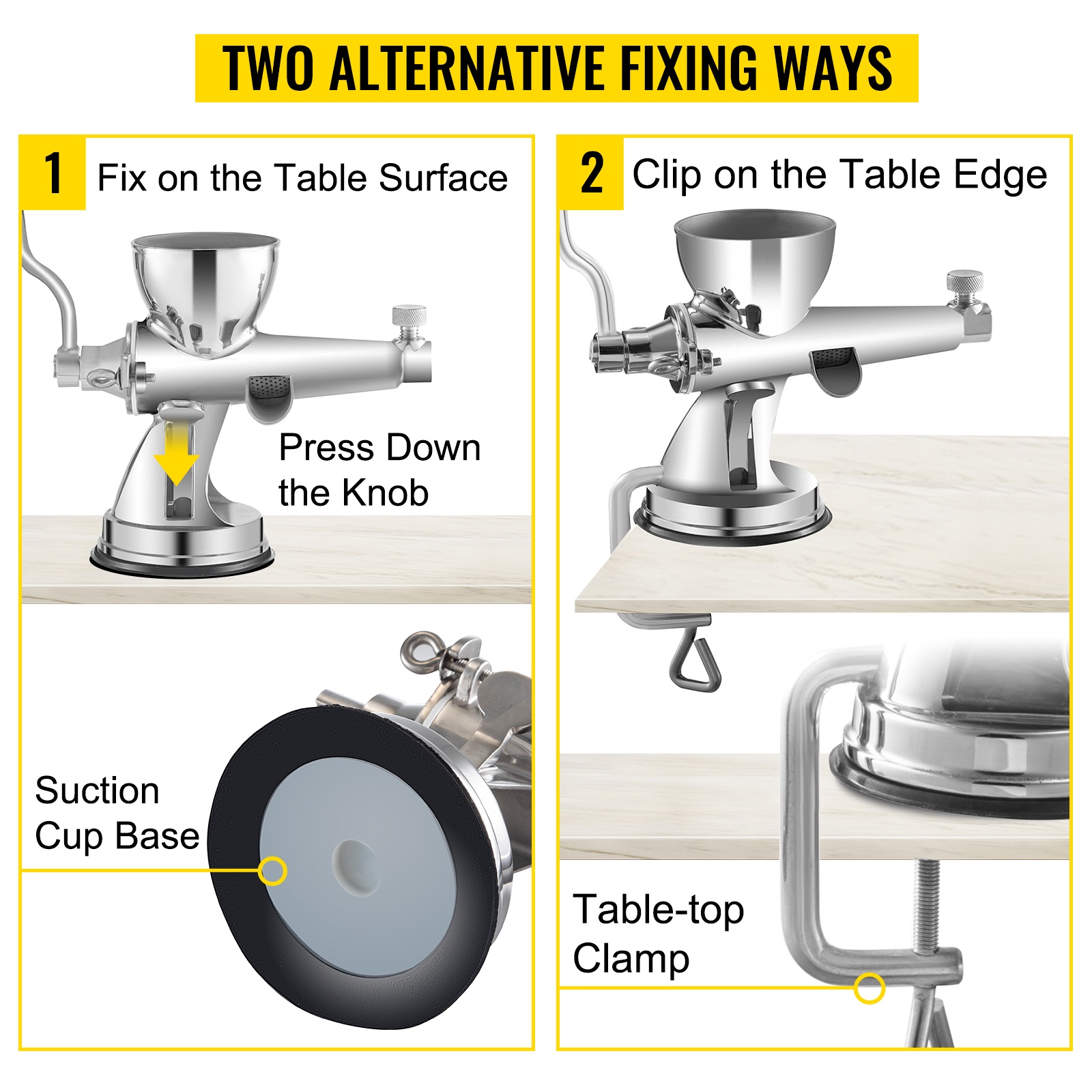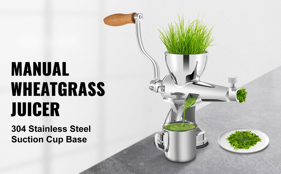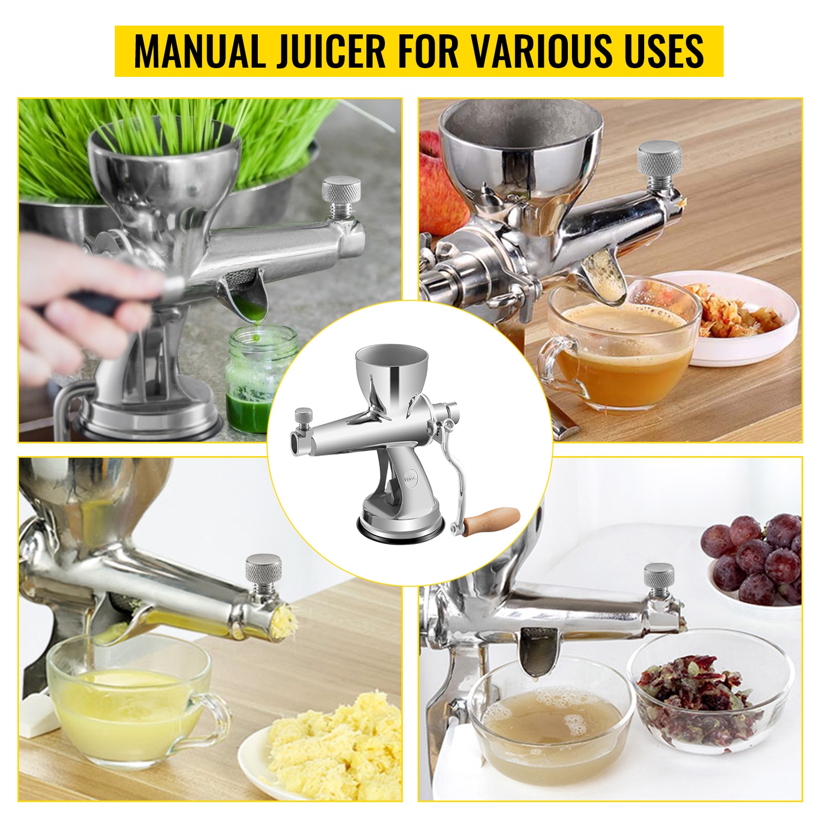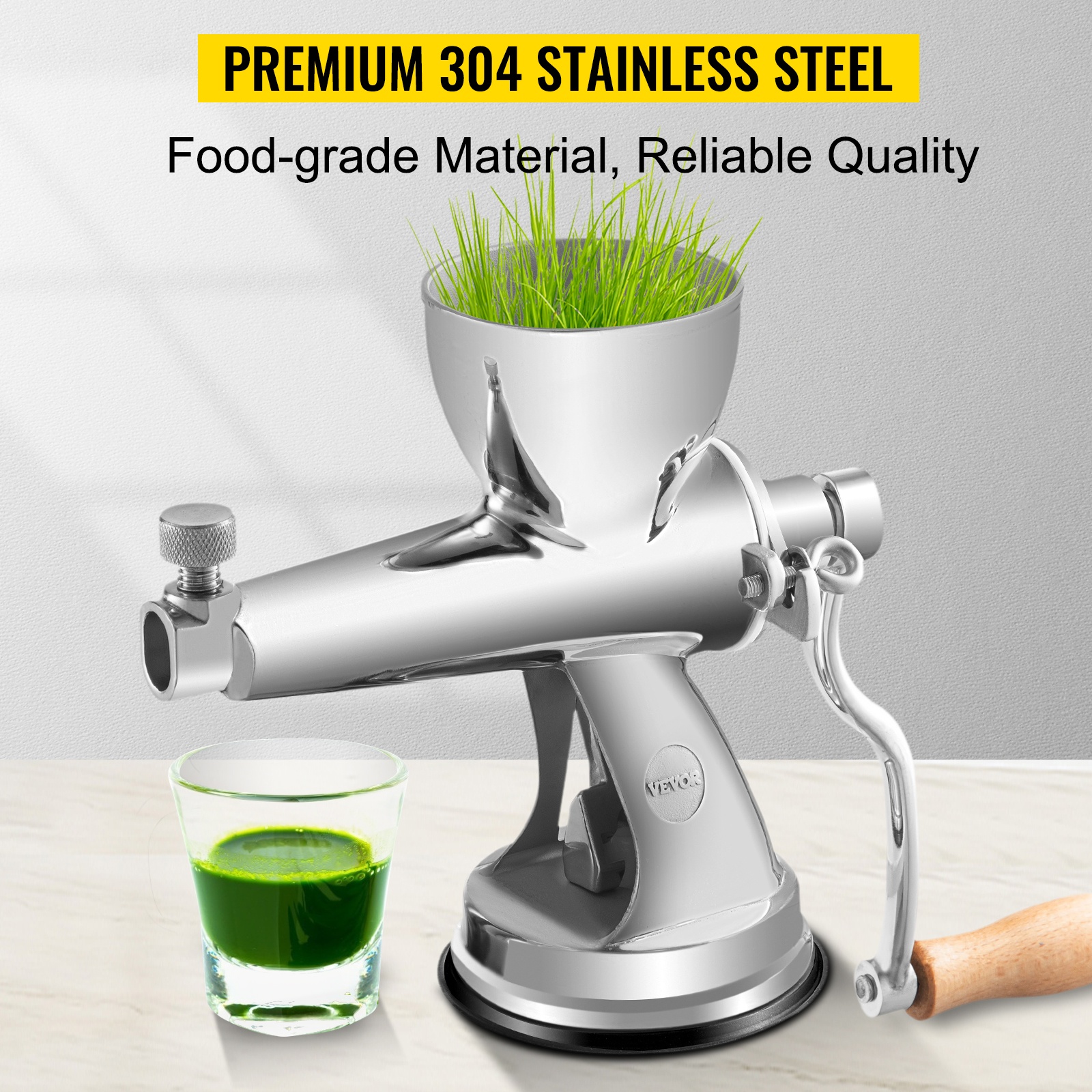 Manuaalinen vehnäorasmehustin ruostumatonta terästä leveällä syöttöaukolla imukupilla ja pöytäkiinnikkeellä