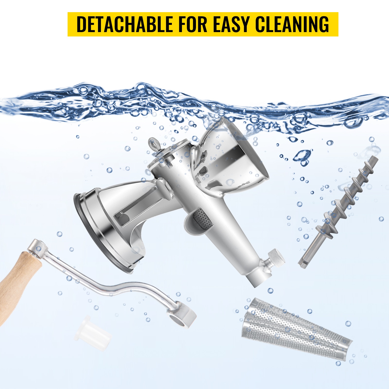 Toisin kuin monet sähköiset mehustimet ja myllyt, tämä käsikäyttöinen mehustin on helppo purkaa osiin perusteellista puhdistusta varten. Mukana tuleva puhdistusharja helpottaa pesua. Irrotettava rakenne tekee myös kokoamisesta ja purkamisesta vaivatonta.