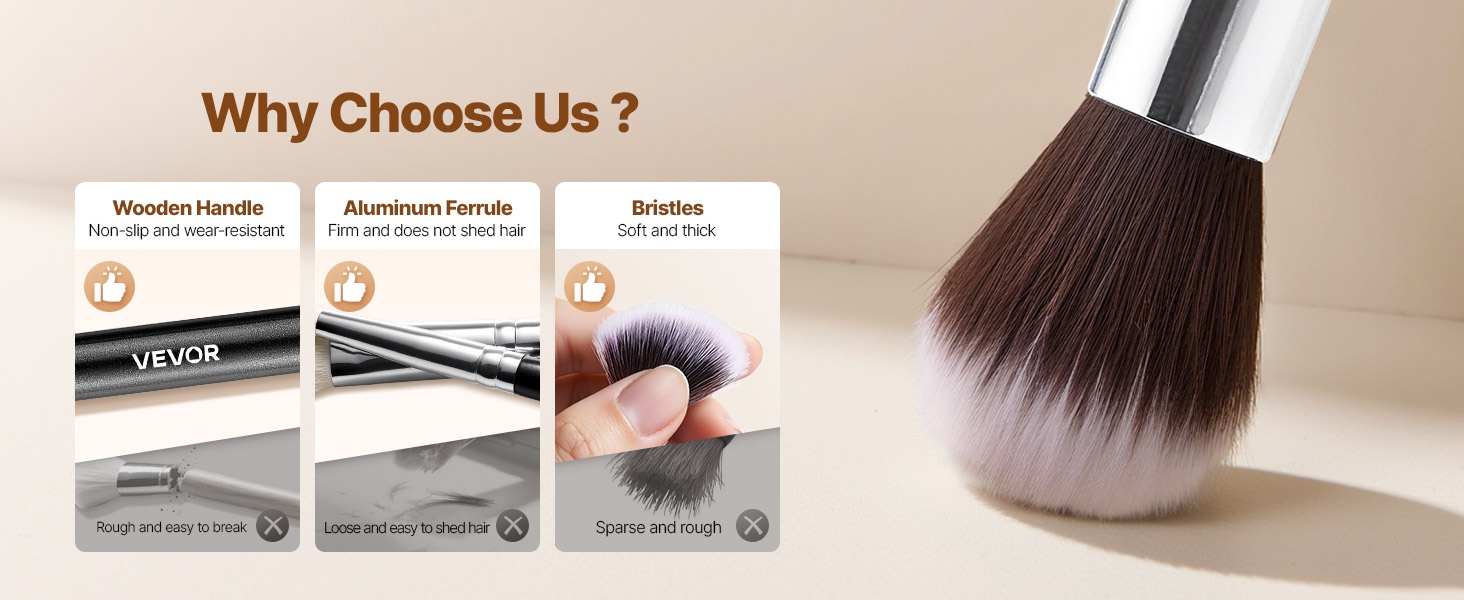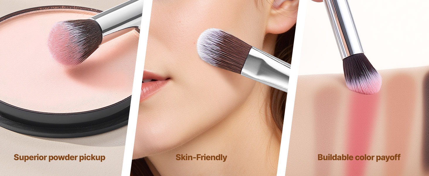 Siveltimissä on pitävä, kestävä puinen varsi, joka istuu hyvin käteen. Tukeva alumiininen holkki lukitsee harjakset paikalleen ehkäisten irtoamista. Pehmeät ja tiheät harjakset levittävät tuotteet tasaisesti ilman raitoja.