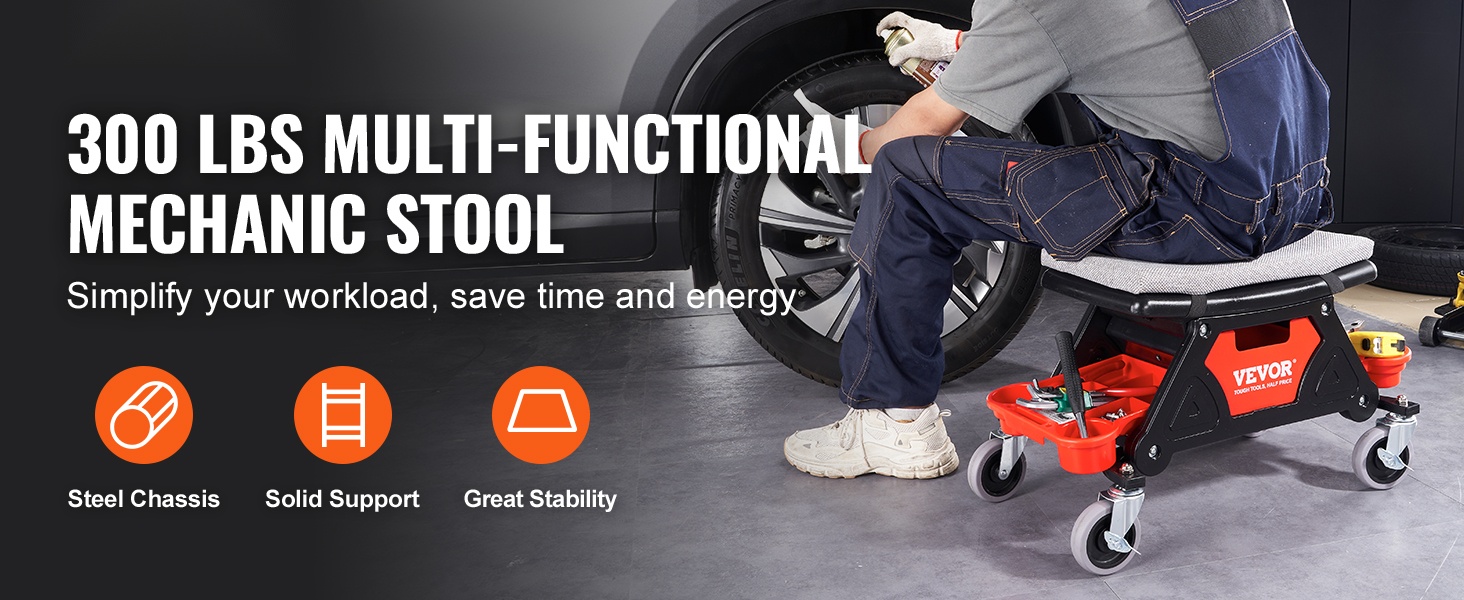 Rullaava mekaanikon istuin helpottaa auton ja muiden laitteiden huoltotöitä kotipajassa ja autotallissa. Kestävä rakenne, mukava istuin ja käytännöllinen säilytystila tekevät työskentelystä sujuvampaa ja vähemmän rasittavaa.