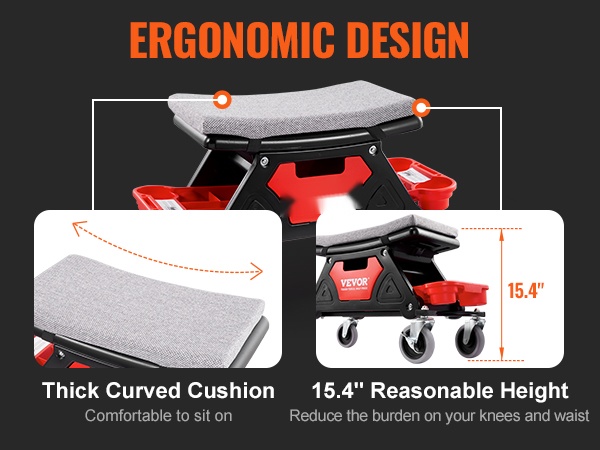 Paksu sieni-istuintyyny ja kaareva, ergonominen muoto tukevat kehoa ja vähentävät rasitusta pitkissäkin työrupeamissa. Pinta on helppo puhdistaa, ja noin 15.4 tuuman istuinkorkeus mahdollistaa tehokkaan työskentelyn ilman jatkuvaa kumartelua.