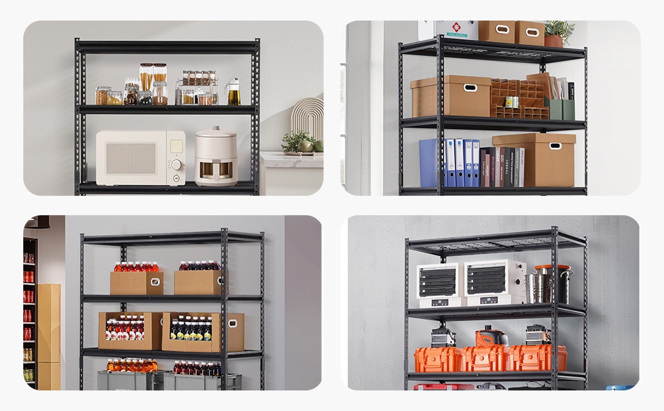 Monikäyttöinen metallinen säilytyshylly sopii autotalliin, varastoon ja muihin tiloihin. Se tarjoaa korkean kantavuuden, tukevan rakenteen ja säädettävän korkeuden, joten saat säilytystilan helposti vastaamaan erilaisia tarpeita.