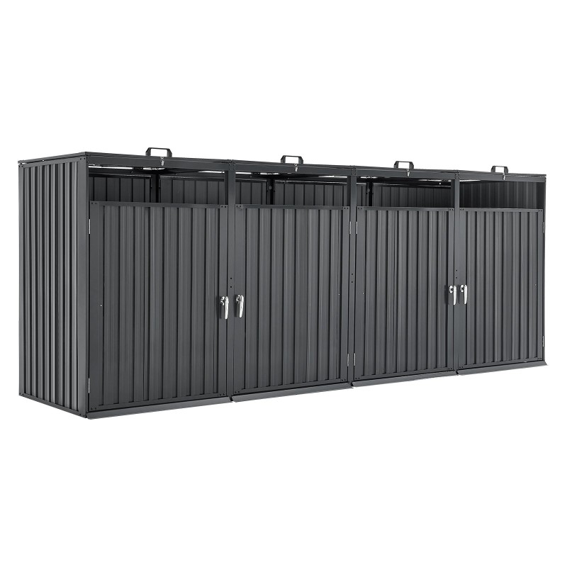 Tämä tilava jäteastiasuoja on suunniteltu pitämään pihan, puutarhan ja terassin siisteinä. Neljään lokeroon mahtuu yhteensä 4 x 52.79 gal / 4 x 240 L jäteastiaa, ja tukeva vaakamallinen rakenne kätkee jäteastiat siististi näkyvistä.
