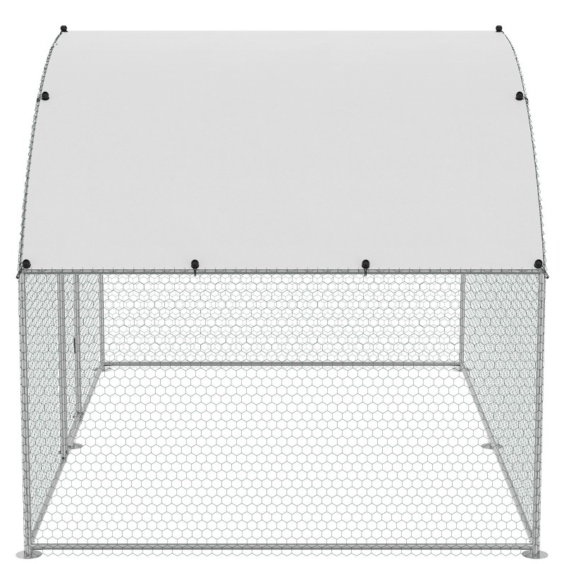 Tämä metallinen ulkokanasuoja tarjoaa tilavan ja käveltävän aitauksen kanoille, ankoille, kaneille ja muulle siipikarjalle. Galvanoiduista teräsputkista valmistettu runko kestää säätä ja on suojattu ruostumista vastaan, joten eläimet saavat turvallisen ja viihtyisän asuinpaikan ympäri vuoden.